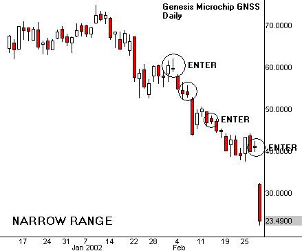 местонахождение узких баров диапазона и снижения объема прямо на