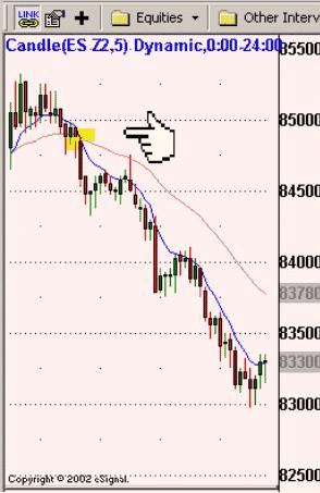 Скользящей средней, 8ЕМА (синяя линия) становится первой линией